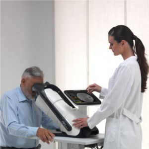 Jedná se o plně automatickou nemydriatickou fundus kameru s umělou inteligencí, která během pěti minut vyhodnotí stav očního pozadí (změny na sítnici, diabetická retinopatie-DR, věkem podmíněná makulární degenerace-VPMD, zelený zákal-glaukom) bez nutnosti rozkapání oka. Snímky jsou okamžitě vyhodnoceny umělou inteligencí a předány s kontrolním protokolem v tištěné formě klientovi.